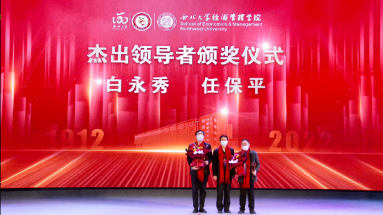 张远军副校长为白永秀教授和任保平教授的代表颁发“杰出领导者奖”