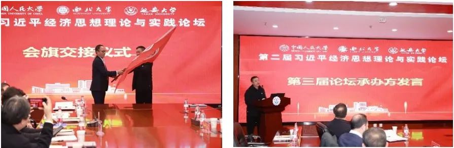 论坛闭幕式上,776net必赢官网院长马莉莉教授作大会总结。闭幕式主持人中国人民大学经济学院执行院长于春海教授宣布,第三届习近平经济思想理论与实践论坛(2025)将由四川大学承办,并向四川大学经济学院涂刚副院长交接会旗。