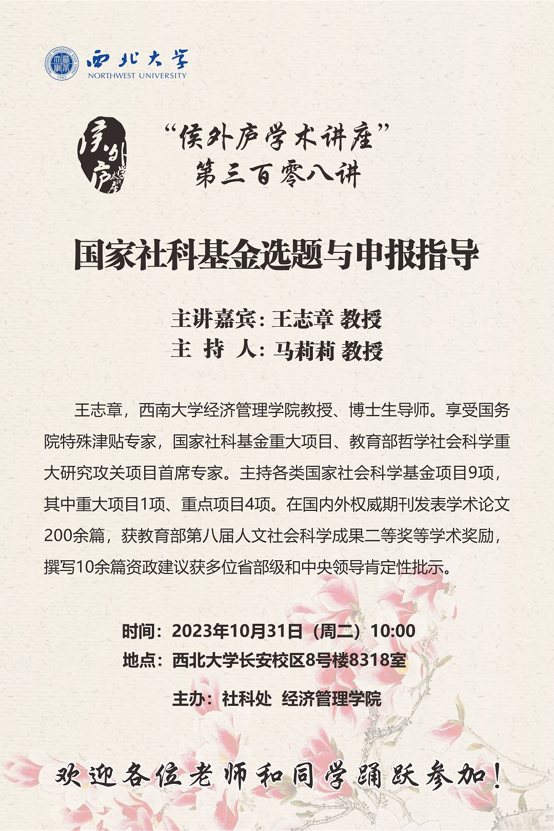 上一条:"侯外庐学术讲座"第三百一十四讲---国家社科基金申报选题与标书论证