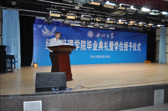最后,院长任保平教授发表了热情洋溢的讲话。他与毕业生们一起回顾了过去几年的学习生活,向为培养毕业生成才做出努力、付出心血的全院教职员工表示衷心的感谢。向同学们几年来为学业付出的辛勤努力致以崇高的敬意。向在被称为“史上最难就业年”的今年顺利找到工作,即将奔赴各条战线建功立业的经管学子表示由衷的祝贺。